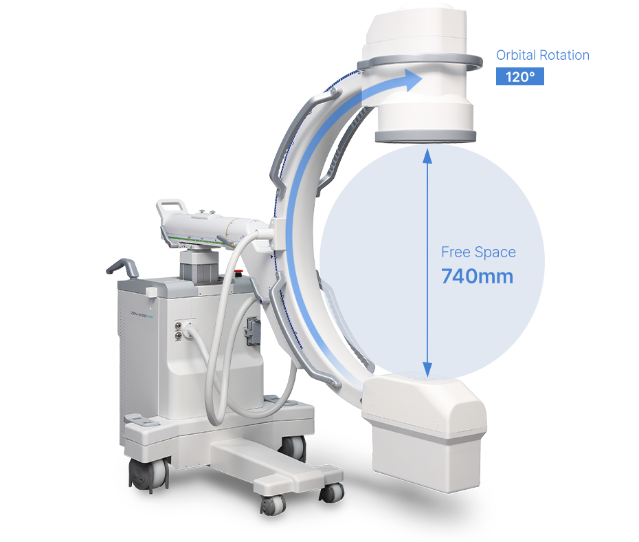 Wide Free Space(740mm) and Orbital Rotation(120˚) provides comfortable and safe operating environment.